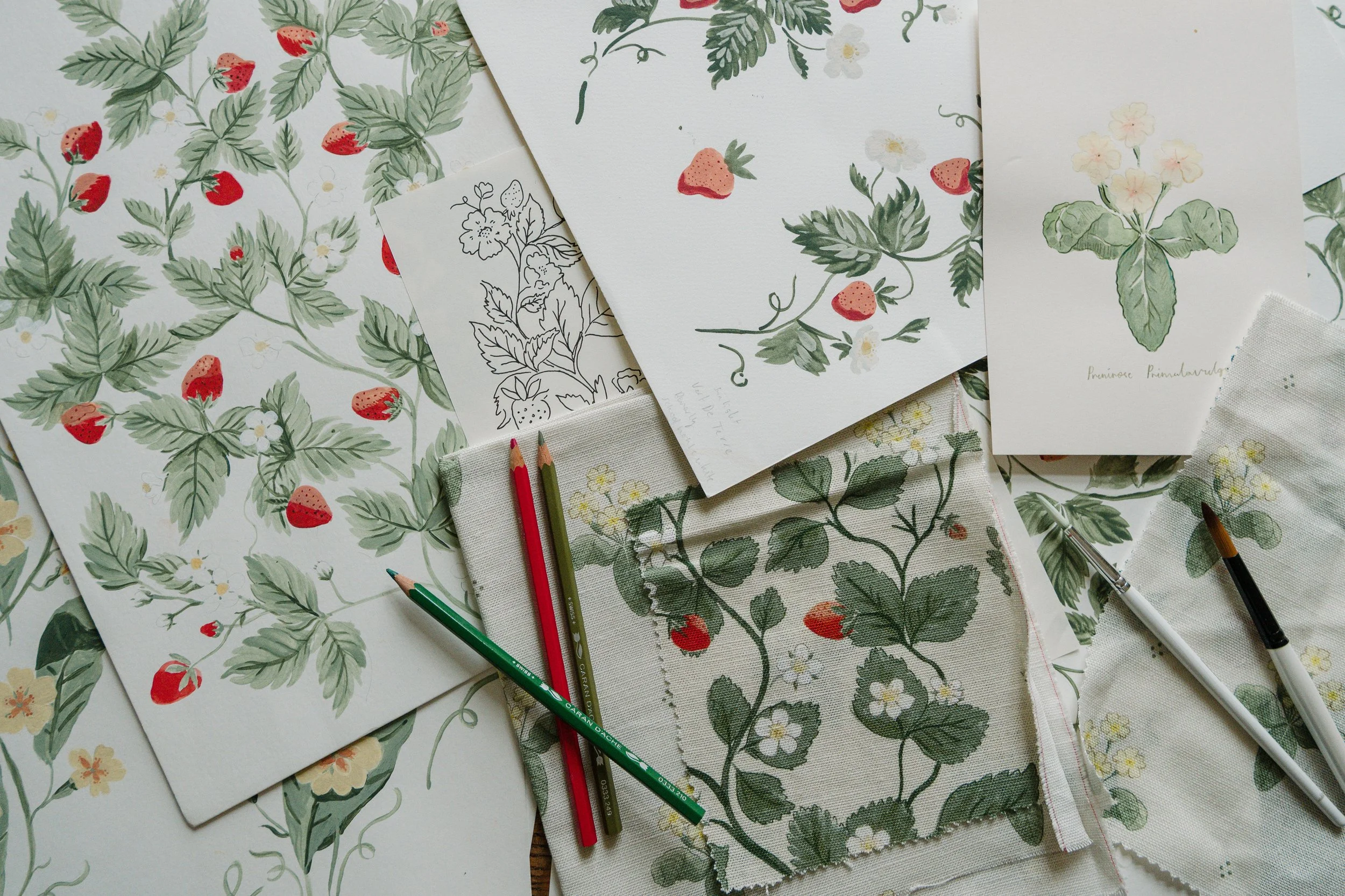 With a background in illustration and a passion for traditional craft, Isabel creates hand-painted wallpapers and fabrics that celebrate storytelling, atmosphere, and the beauty of slow design. Each pattern begins as a painted sketch in her studio and draws on the principles of the British Arts and Crafts movement valuing natural beauty, thoughtful detail, and the importance of art in everyday life.